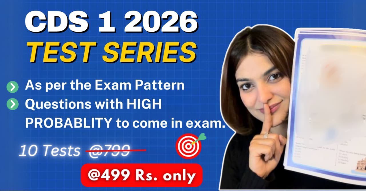 This Test Series is Completely Different π― Agar tum UPSC/CDS ki preparation kar rahe ho, toh tum NCERT ki value zaroor jaante ho. Science aur Geography jaise high-scoring subjects mein NCERT ka ek-ek word repeat hota hai. Hamari aim simple hai sirf wahi padho jo exam mein aata hai, aur extraordinary marks score karo. Is test series mein maine sabse important topics select kiye hain woh topics jahan se last 10 years mein kam se kam 10 questions aaye hain. Maine NCERT ko line by line highlight karke usi se questions banaye hain. And believe me this approach is already a hit. Aise questions milenge jo CDS 1 2026 exam mein almost as-it-is dikh sakte hain. Ready ho jao kuch naya aur effective follow karne ke liye jo shayad tumne pehle na dekha ho, na suna ho. Self-study ke saath SMART WORK bhi zaroori hai aur woh hoga Best Test Series ke saath. π Test Series Details: β 10 GS Tests β 120 Questions Each β Pure NCERT Based β High-Probability Topics β Exam-Oriented Approach Iss Test Series se direct questions exam mein mil sakte hain. Letβs Clear CDS 1 2026 saath mein πͺ π Batch Includes: β’ Complete GS Test Series β’ Early Access to LMR Batch LMR PDF will be accessible only on App ( not on web) and will not be given for download. TESTS CAN BE ATTEMPTED ON MOBILE PHONES AND LAPTOP/PC. For Laptop/ PC click on this link and enter your login details- https://web.classplusapp.com/ ORG CODE - XVVEL For Mobile phones- Access the test in My Courses directly β Courses are strictly non-refundable π For any queries before purchase, please call: 7982047997