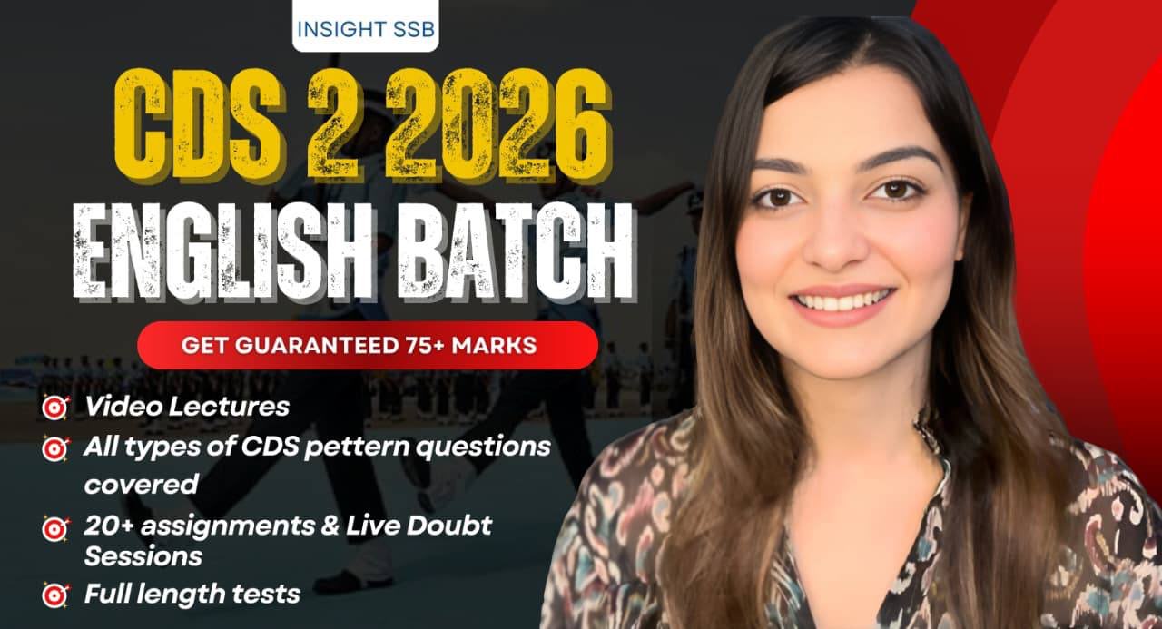 π― 75+ Guarantee β MAHA SCORER Batch (CDS English) Why INSIGHT SSB's Batches are most hyped & everyone wants to join it? Simple: SMARTWORK π₯ π Hum wahi padhte hain jo paper mein aata hai! And the proof? π Our most trusted LMRs Module & videosπ β¨ CDS 1 2026: π₯ Har Synonym/Antonym directly from English LMR π₯ Grammar ke saare questions repeat hue from our 20-page LMR Notes π₯ Agar LMR ne last week mein paper crack karwa diya, socho agar preparation Day 1 se LMR-focused ho toh? π Course Highlights: β 75+ Score Strategy β ON POINT CDS ke latest pattern ke hisaab se poora content β target = 75+ in English β New Pattern Questions ONLY CDS 2 2025 ke recent paper jaise hi questions karwaaye jaayenge β Grammar β Zero se Hero tak Concepts clear karenge, ratta nahi maarenge! π All grammar questions last paper mein aaye the sirf LMR Notes se β Assignments + Live Doubt Sessions (Oct 2025 onwards) Har topic ke baad proper practice + clarity sessions β Vocab, Idioms, One Word β Bas 150β200 Most Expected Jo paper mein aate hain, wahi padhenge. β CDS 2 2025 ke latest trend ke hisaab se topics update honge. βOfficer wahi banta hai jo SMARTWORK karta hai!β β‘οΈ Let's create a result wali LEGACY this time! πͺ π« Note: Course is NON-REFUNDABLE π Got doubts? Call before joining: 7982047997